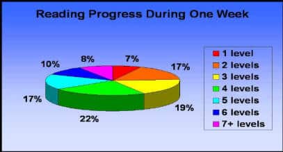 When the level of improvement is correlated to the age of the student, a clear pattern of steadily rising results emerges. Children age 8 through 12 had average gains of slightly above 3 grade levels. Teenagers, age 13-18, averaged almost 5 grade levels of improvement during the one week program. Adults, ranging in age from 19 through 57, experienced an average improvement in ability of 6 grade levels.