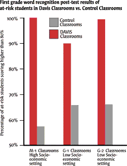 The Davis groups scored significantly higher on tests of sight word recognition, and no children from the Davis groups needed further intervention or special education support. Results for first graders were later compiled and published in a peer-reviewed journal. 3